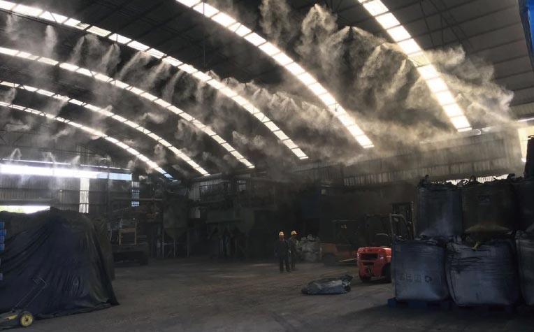 將“的凈”工業(yè)除臭劑加入原液桶攪拌后,通過噴淋頭霧化后除臭